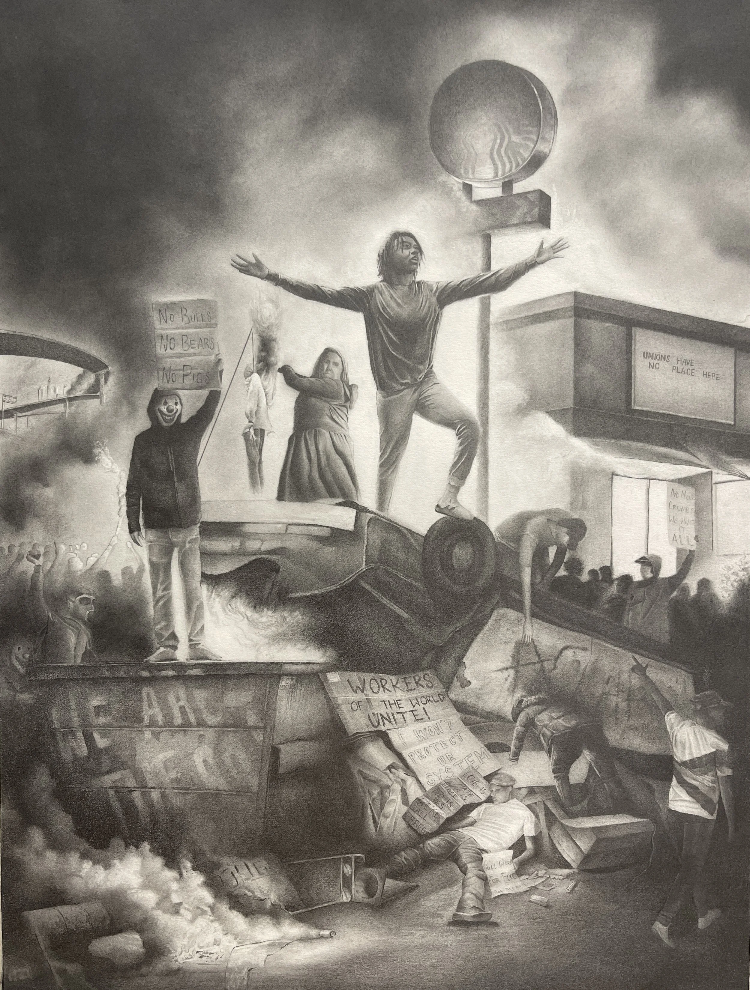Class Struggle 36 x 54 inches graphite on paper 2023