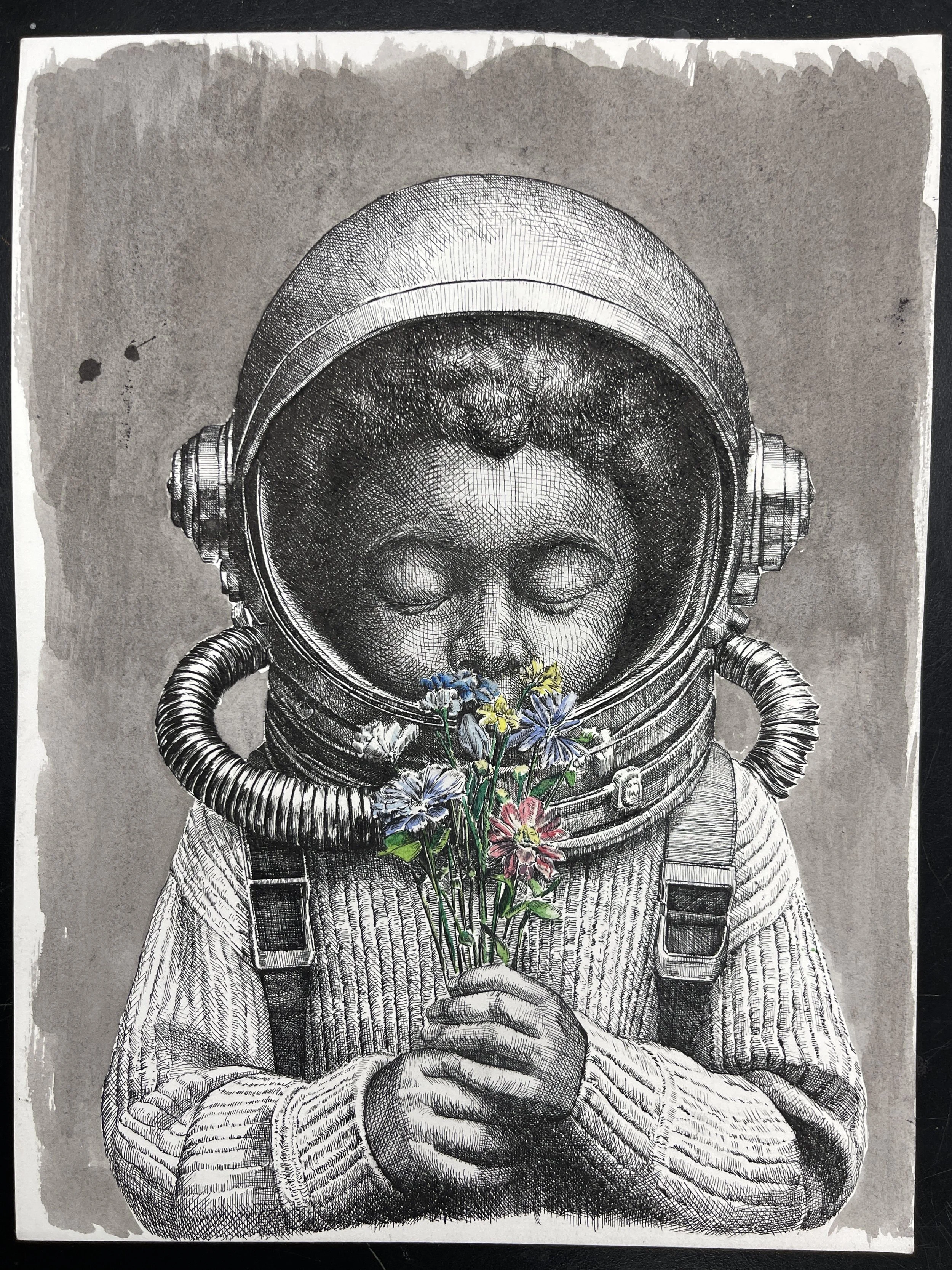 Sensing "FLOWERS" 9 x 12 inches ink and water color on paper 2024