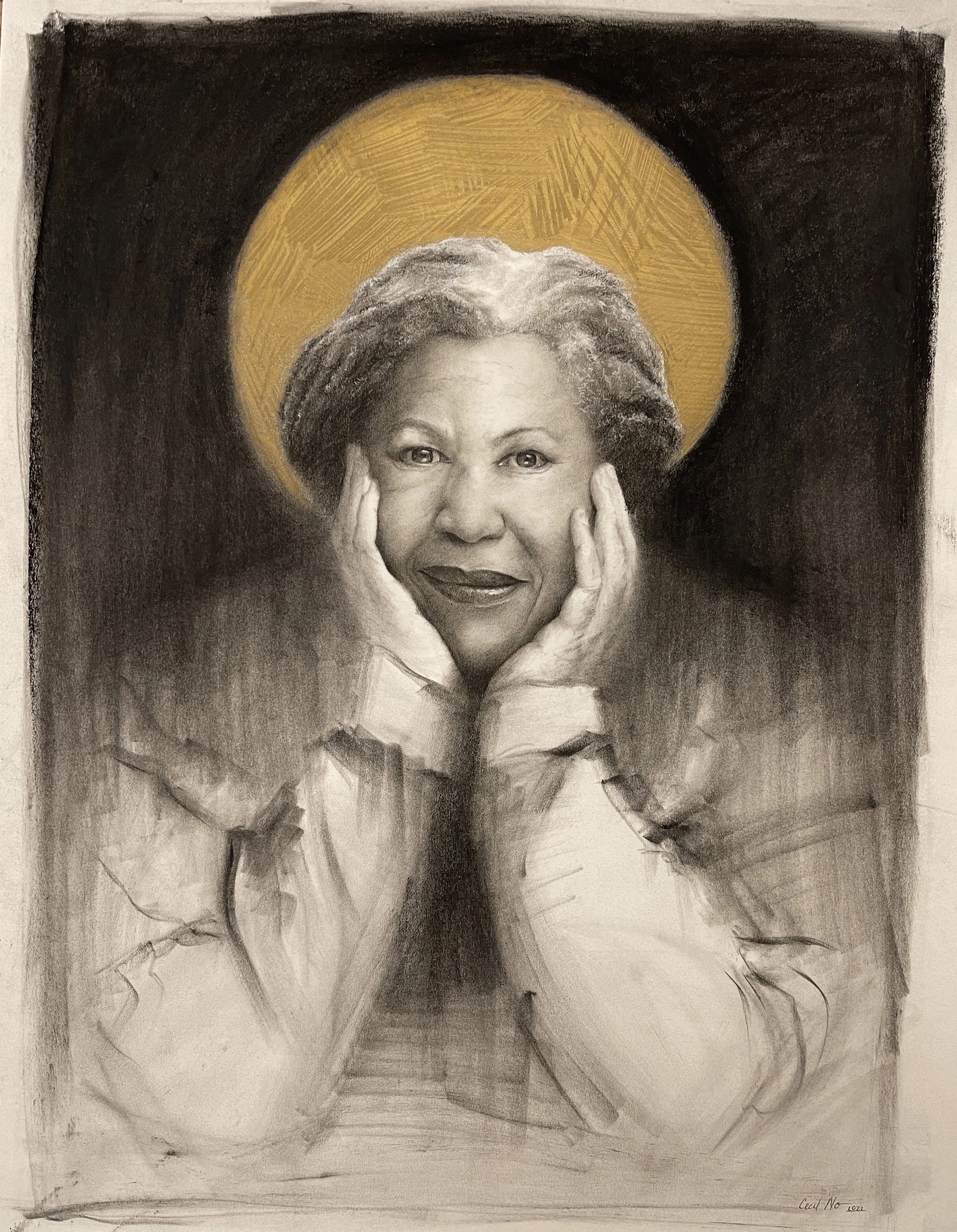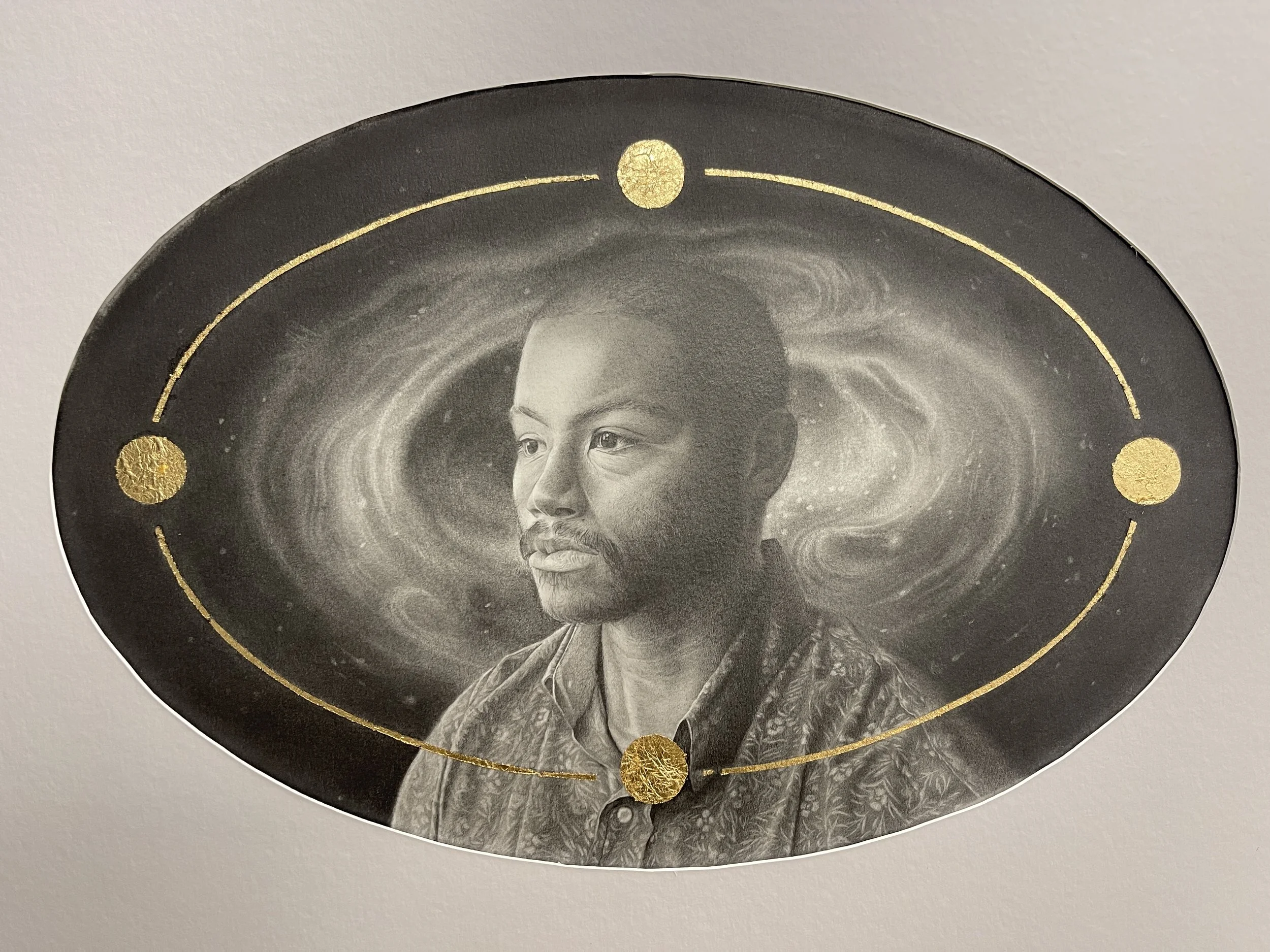 I am my ancestors 12 x 18 inches graphite and gold leaf on paper 2023